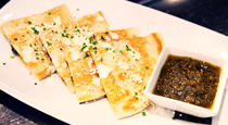| A quesadilla is a flour or a corn tortilla filled with a savory mixture containing cheese and other ingredients, This dish originated in Mexico, and the name is derived from tortilla and the Spanish word for cheese, queso. Analogous to the American grilled cheese sandwich, the quesadilla is usually prepared on on a grill or frying pan. Braising has been reinvigorated by the "slow cook movement." Its purpose is to break down fibers and add moisture and flavor to, otherwise, tougher and less expensive cuts of meat. Executive Chef, Owner, Cookbook Author and Food TV Network Host, Aaron Sanchez, shares his culture and passion for food with some of the traditional flavors of Mexico. A Quesadilla with Seasonal Veggies, Queso Oaxaca & Roasted Tomatillo and Braised Short Ribs Jalisco Style. |